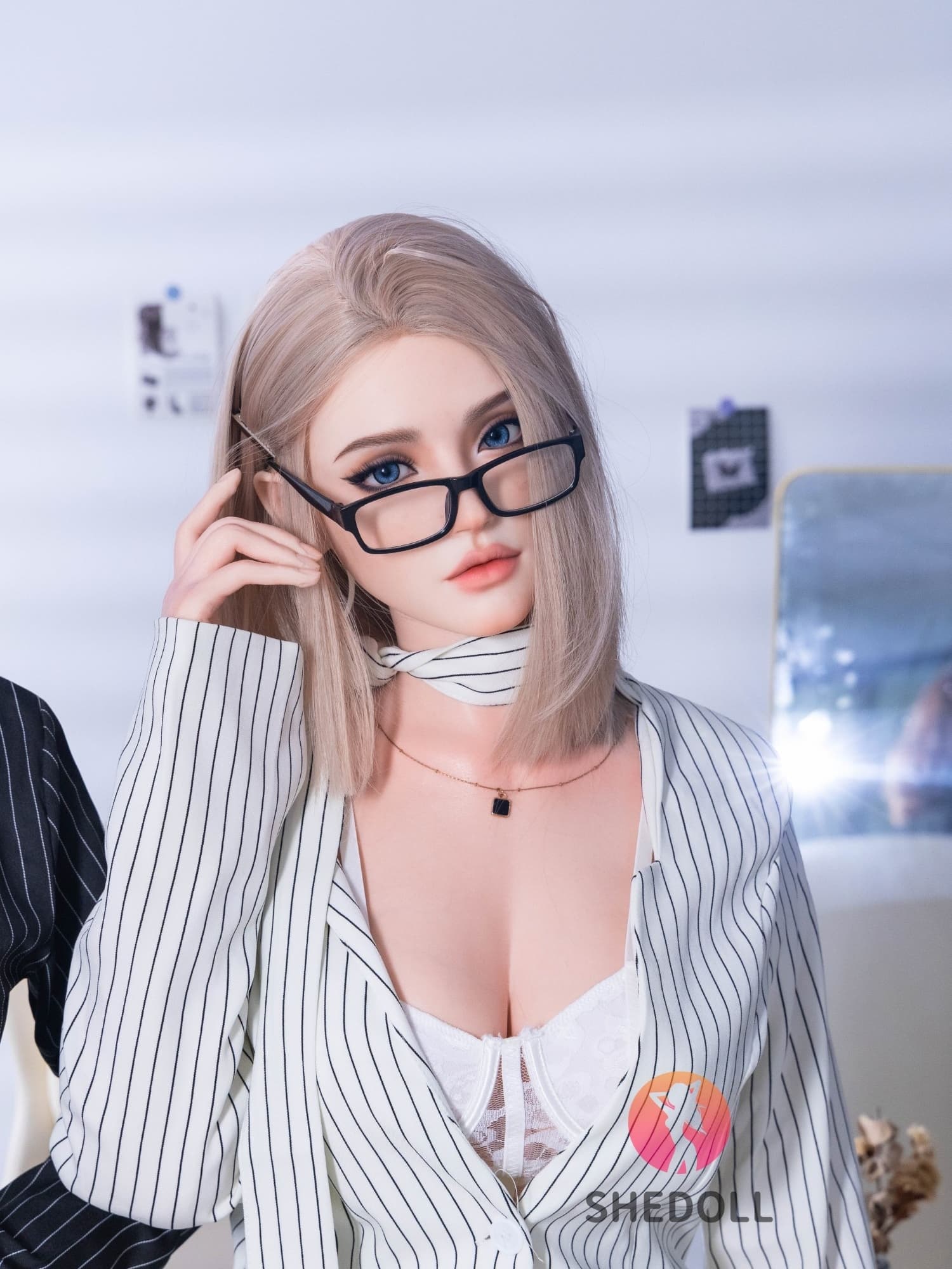 This 168cm D Cup Silicone Sex Doll features an elegant yet seductive appearance. With perfect body proportions, full D-cup curves, silky smooth skin, and an alluring professional look with glasses, she feels like a real goddess sitting right in front of you. Her subtle smile and captivating gaze will draw you into her irresistible charm instantly.