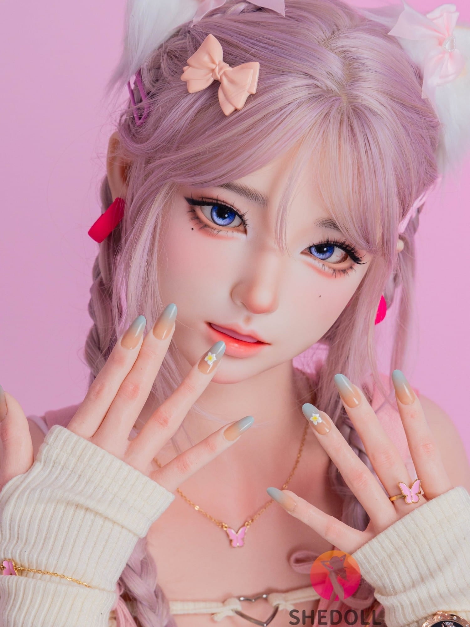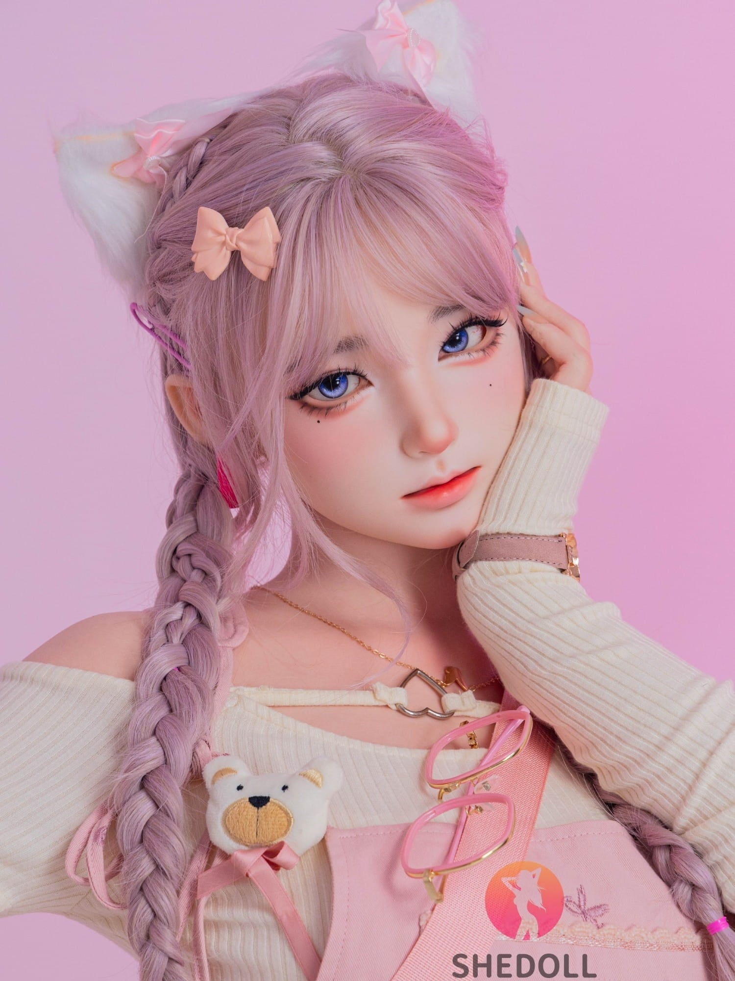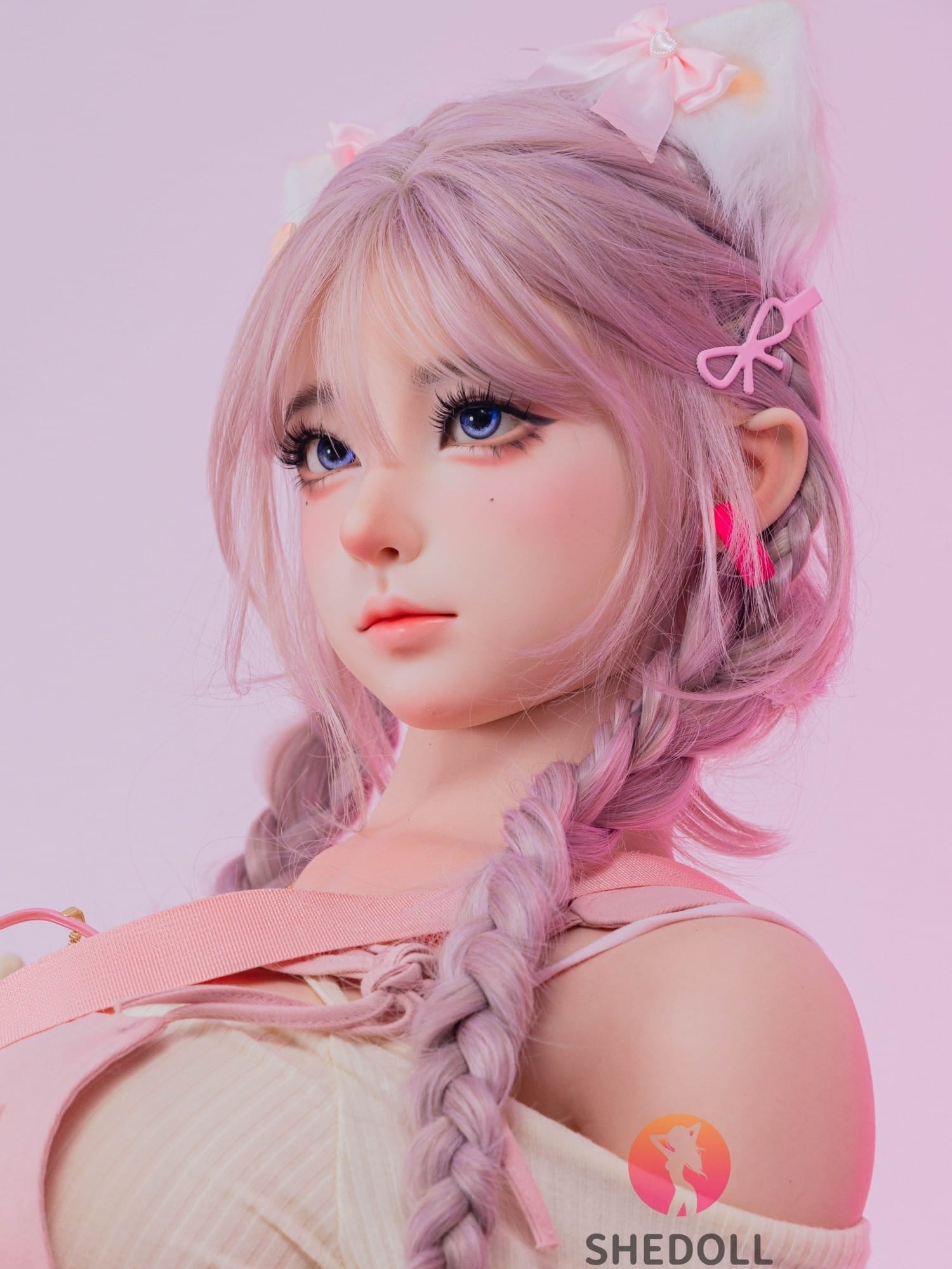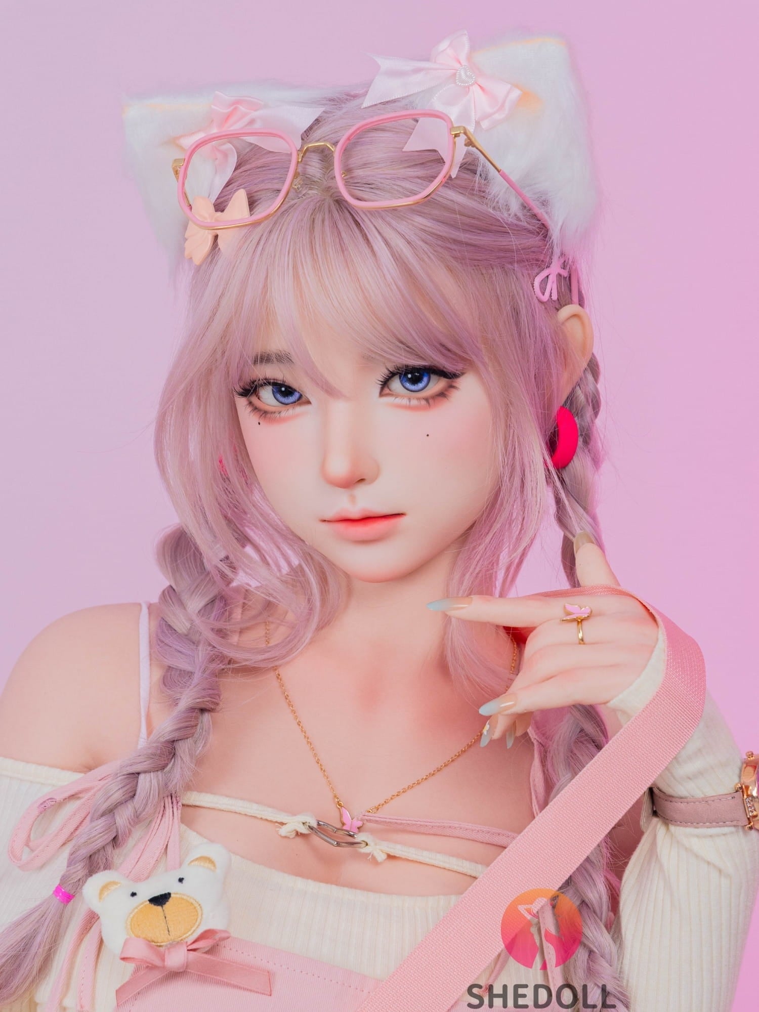 This Japanese Sex Doll is inspired by a pastel-toned anime girl, her soft lavender twin braids falling gracefully over her shoulders, paired with adorable cat ears and bow accents—like a sweetheart straight out of a dream. Dressed in a light pink overall dress, she highlights her long legs and delicate waist, radiating a gentle yet heart-throbbing charm. Crafted from premium medical-grade silicone, her skin is exquisitely smooth and warm, making every touch feel as real as caressing a living beauty.