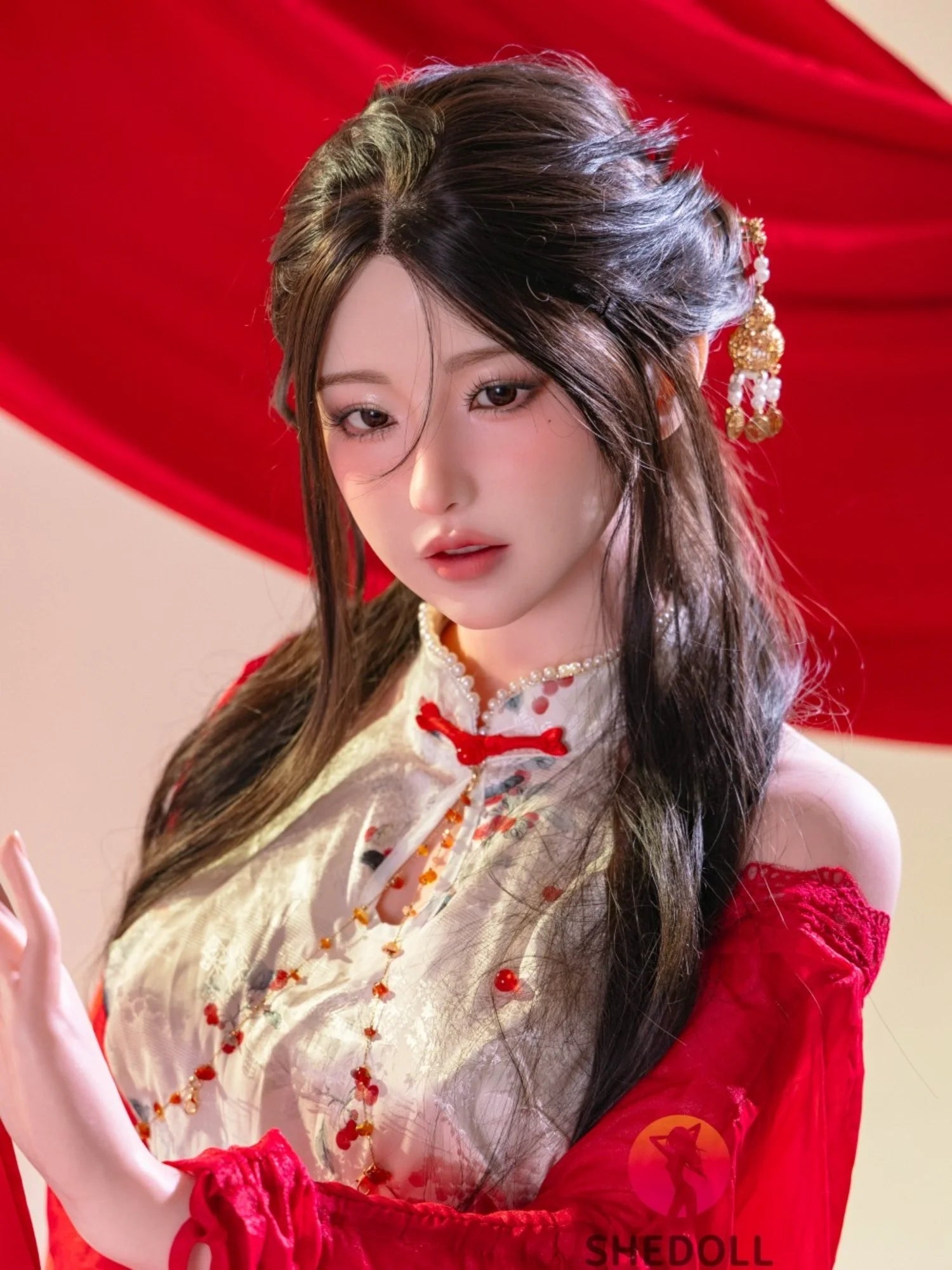 This Chinese sex doll has long, straight, jet-black hair and wears a white qipao, exuding an elegant and classical charm. Her overall presence gives off a gentle and serene vibe. If you fantasize about intimate interactions with an Asian girl, she is a choice worth trying, offering a unique taste of Eastern allure.