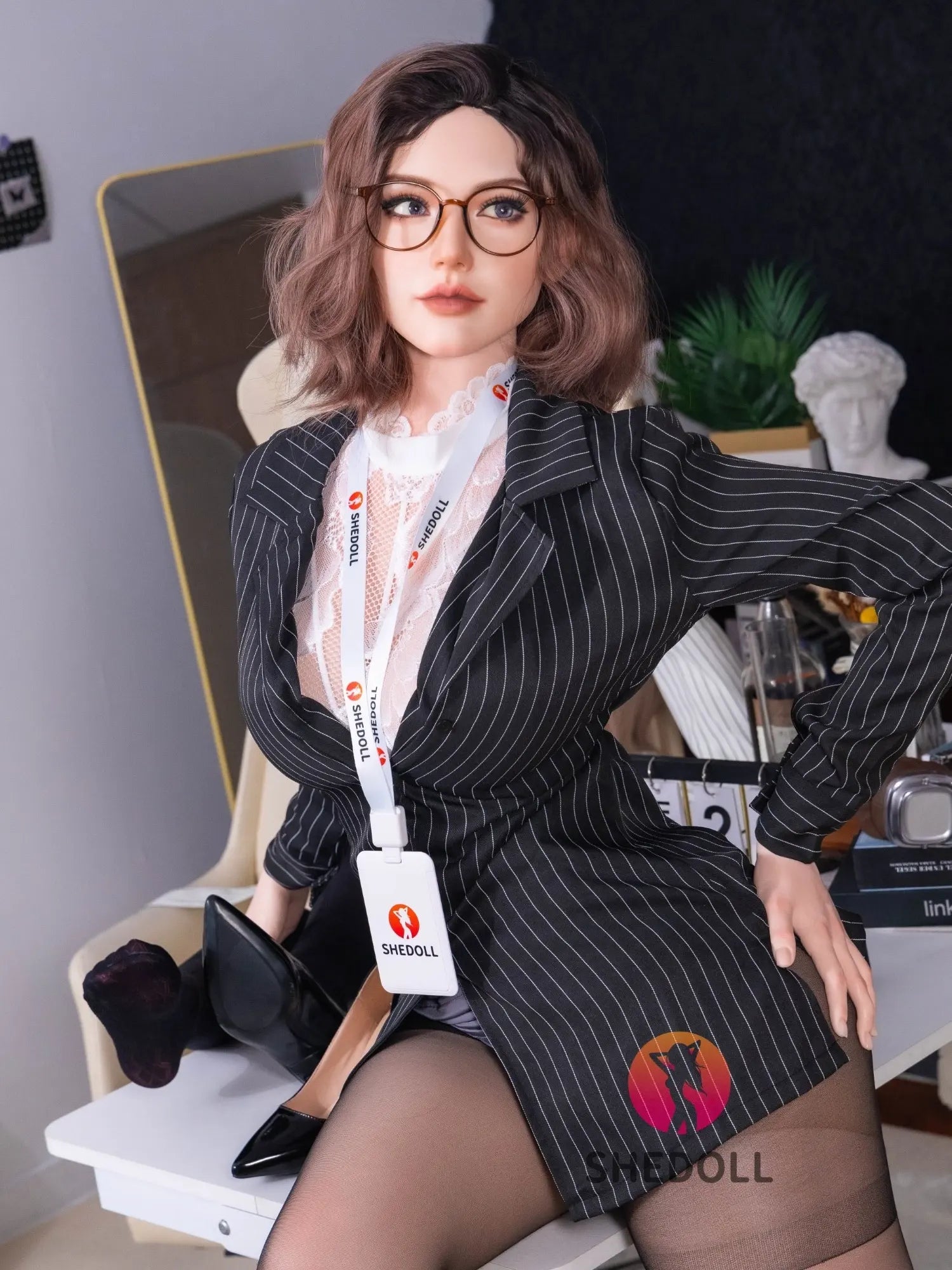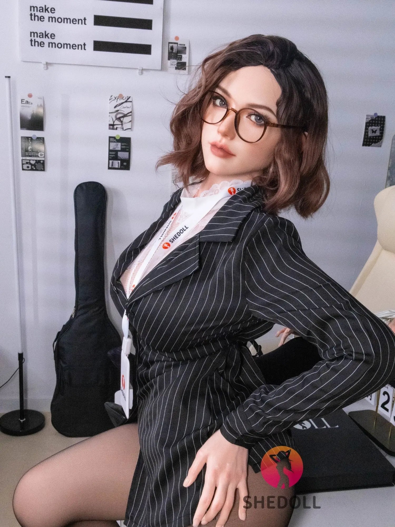 She has delicate short hair, wears glasses, and sports refined makeup. Dressed in professional attire or a tight skirt with a work badge on her chest, she exudes the aura of a capable city office worker, ready to bring an exciting office romance experience. Beyond the office role, you can dress her as any character you imagine, easily fulfilling various sexual fantasies.