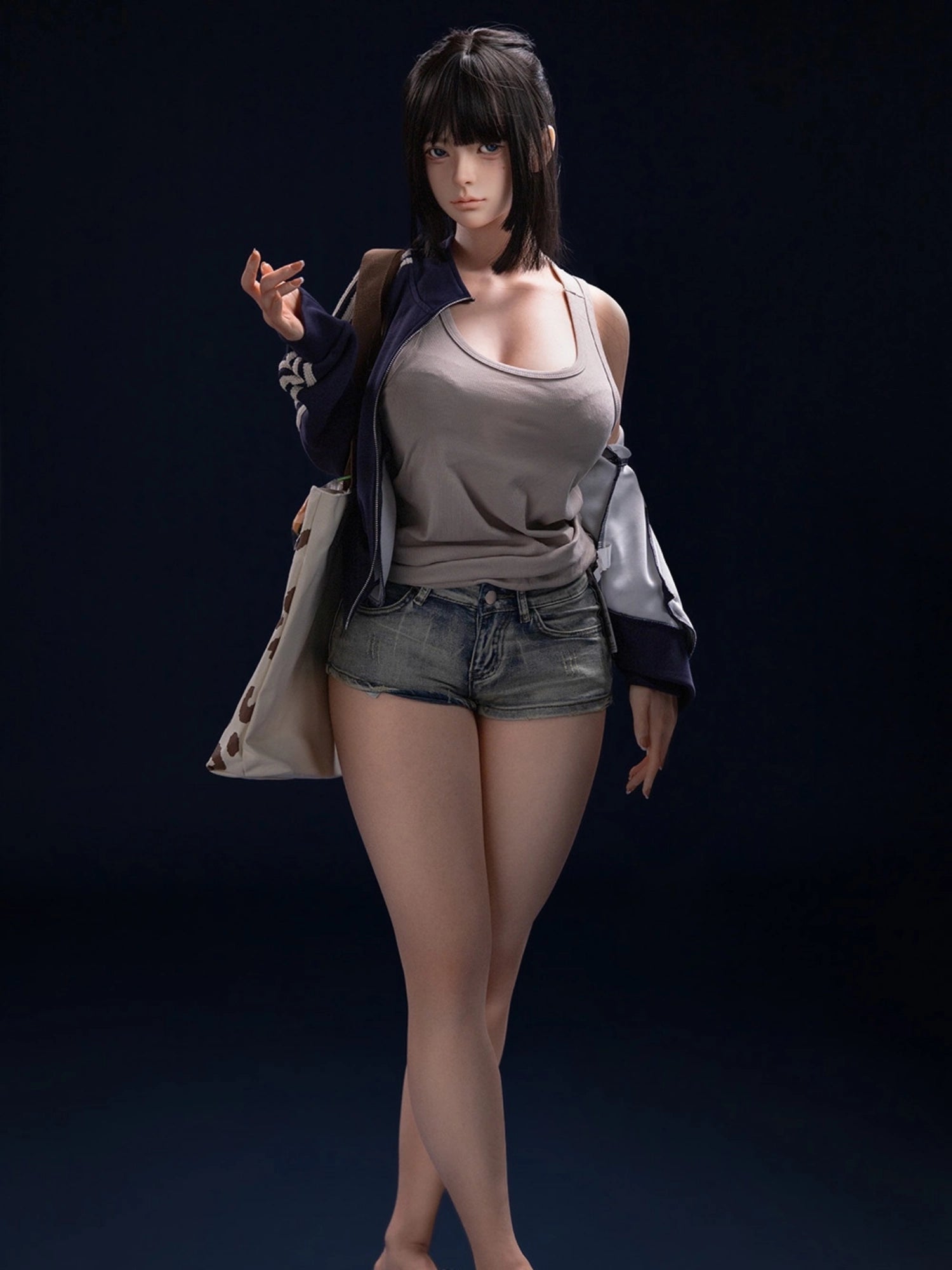 Her delicate Asian features radiate youth and vitality. With gentle, natural makeup, wide sparkling eyes, and long, silky black hair styled in a Japanese fashion, she exudes charm and energy. Every glance feels inviting, every expression is captivating—she’s more than just a doll; she’s a companion that draws you in with her youthful allure.