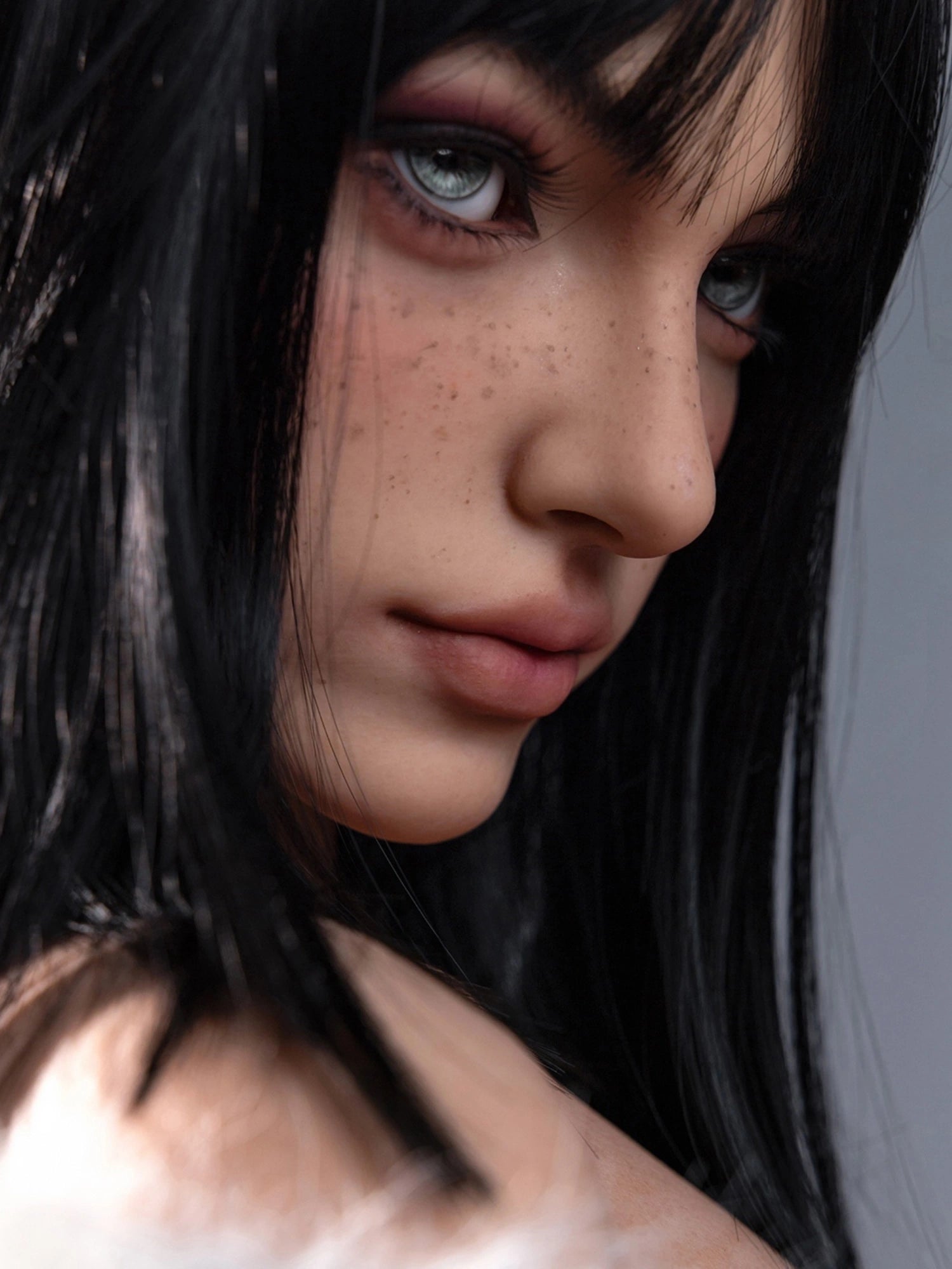 The F6289 is crafted from high-quality silicone, giving the entire body a smooth, delicate skin texture that looks and feels remarkably close to real human skin. The head sculpt is finely detailed, with well-balanced facial features and soft, natural contours that are pleasing to the eye. Her straight black hair falls naturally, while subtle freckles across the cheeks add an extra layer of realism and character. Whether viewed up close or touched during everyday use, the silicone delivers a convincing skin feel with rich, lifelike detail.