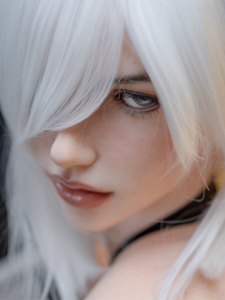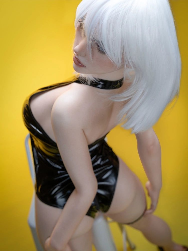 Her name is Mary, the Japanese Sex Doll who commands attention the moment she appears. Standing 164cm tall with an alluring G-cup figure, she’s wrapped in a glossy black leather outfit that glimmers like a forbidden jewel under the night. Her silver hair contrasts sharply against the dark shine of her attire, giving her an aura that’s both dangerous and irresistible. One look into her eyes, and you’re drawn into her world of temptation and control.