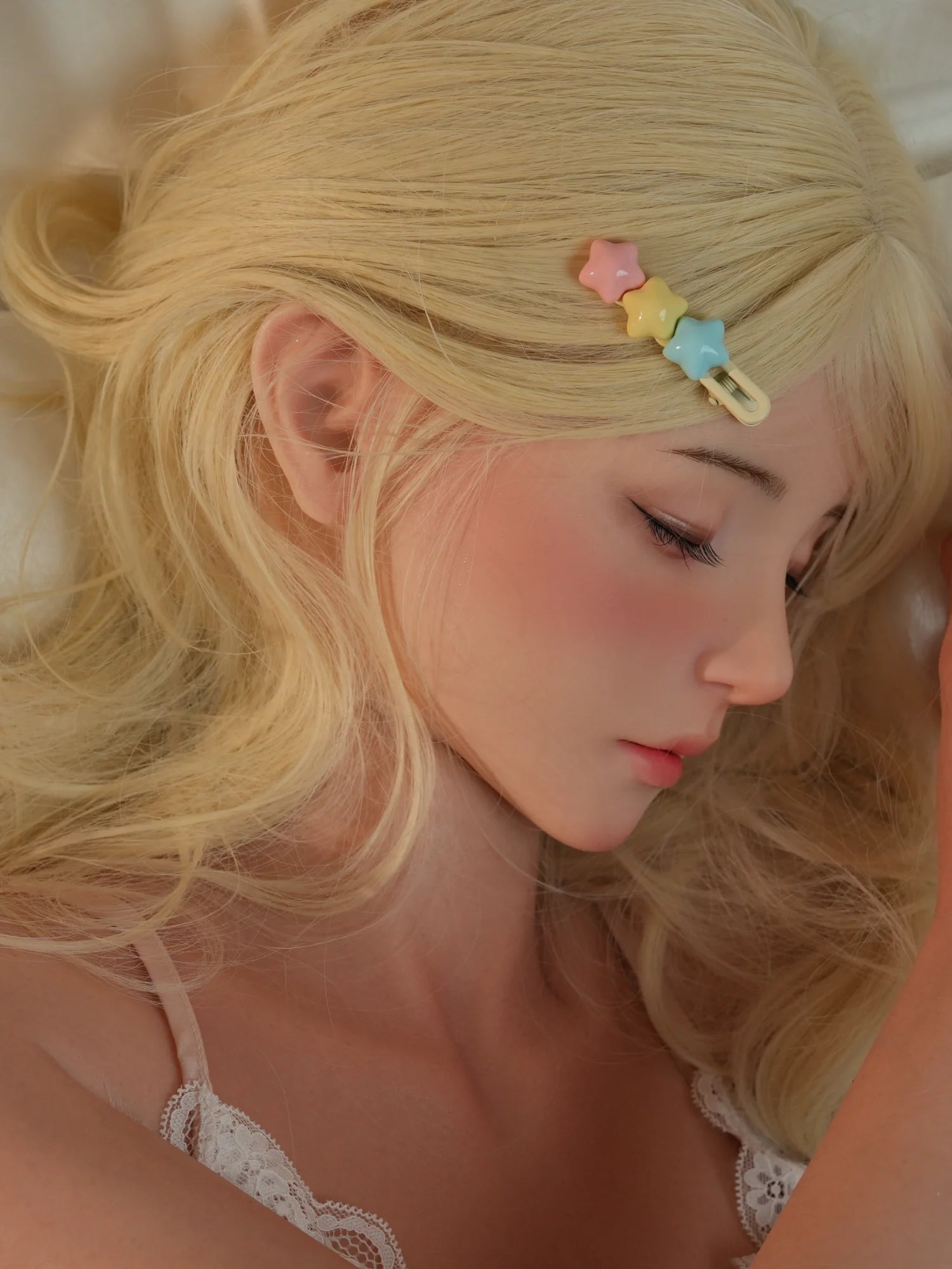 Welcome to the world of F9203. She is your ultimate real life sex doll, trapped in an eternal, sweet slumber, silently waiting for you to wake her up. With captivating blonde hair and a serene, closed-eye face, she exudes a pure tenderness that begs for a kiss. Her surprisingly light weight of only 32 kg (70.5 lbs) paired with a stunning 56cm (22 in) waist means you can easily scoop her into your arms for intimate cuddles. She’s your bedside bombshell, embodying the sweetest repose, proving that even a small sex dolls weight can offer maximum pleasure.