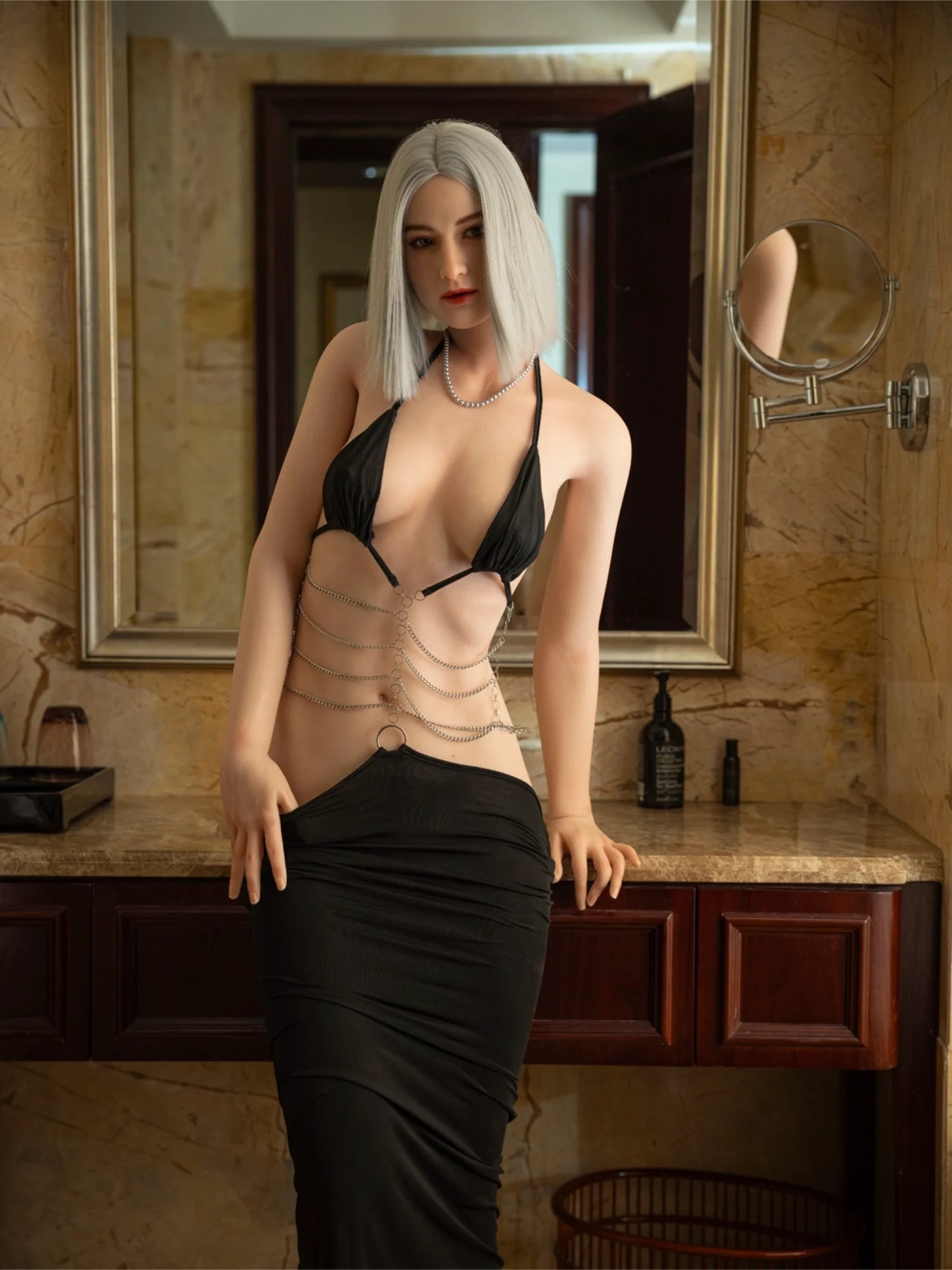 The Starpery F9217 redefines the mature aesthetic with her chic, modern short white hair and refined features. This life size sex doll captures the essence of a confident, contemporary woman. Standing at 5'8", her silver-toned hair complements her mature facial structure, creating a look that is both fashionable and deeply alluring for those who appreciate timeless beauty.