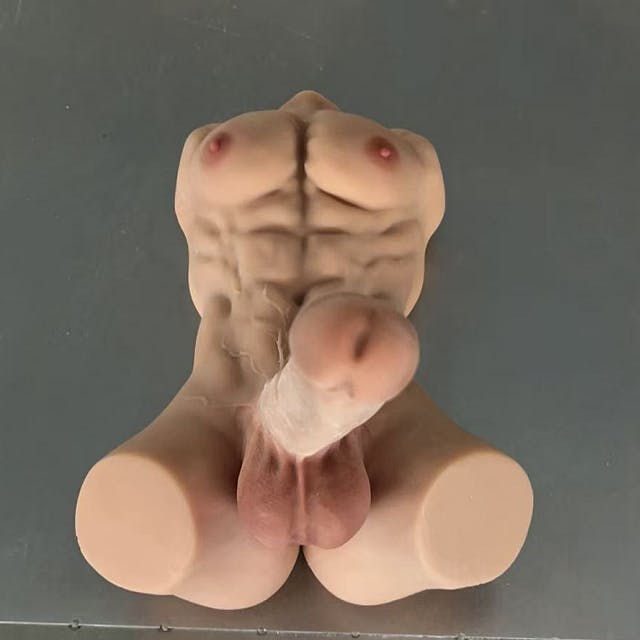 This male sex doll torso is a visual and tactile powerhouse — its penis hits hard with a 7.9-inch (20cm) erect length and 8.4-pound (3.8kg) solid bulk. The thick shaft’s raised veins pulse under your grip, while the glans crown’s intricate wrinkles scream realism. Palming it feels like grabbing a real-life monster cock — heavy, veiny, and ready to dominate. When you slide in, the gradual taper mimics a natural erection, easing in without the harsh sting of plastic toys. Every thrust crams you full, with the TPE’s squishy give creating that "holy shit, is this real?" sensation only a Dildo sex doll torso this massive can deliver.