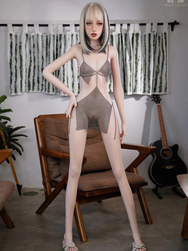 Designed as a refined Flat Chest Sex Doll, her petite 65cm bust and narrow 49cm waist highlight a youthful, toned figure, while her 84cm hips add a gentle curve that enhances visual balance. The contrast between her slender frame and smooth skin texture makes every touch feel personal and immersive.