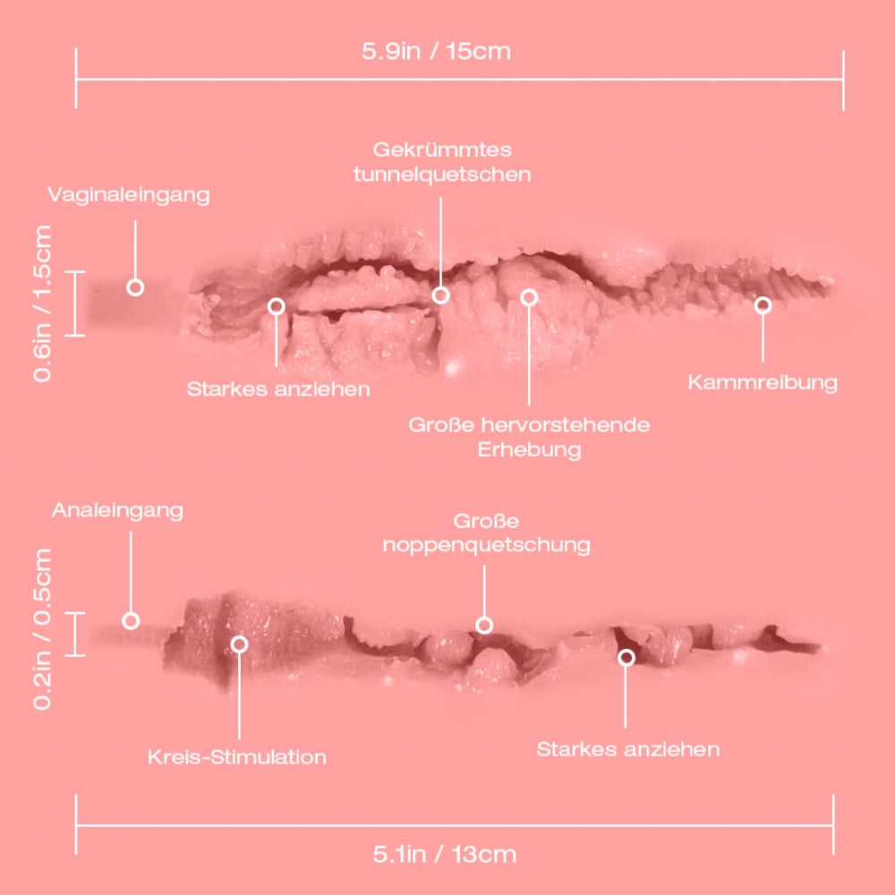 Lola’s realistic skin texture features subtle pores and gentle resilience, inviting your touch with every movement. Her dual tunnels offer distinct sensations, combining varying tightness and suction for a deeply immersive and unforgettable experience every time.