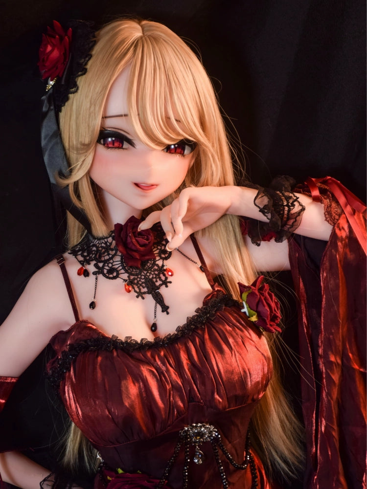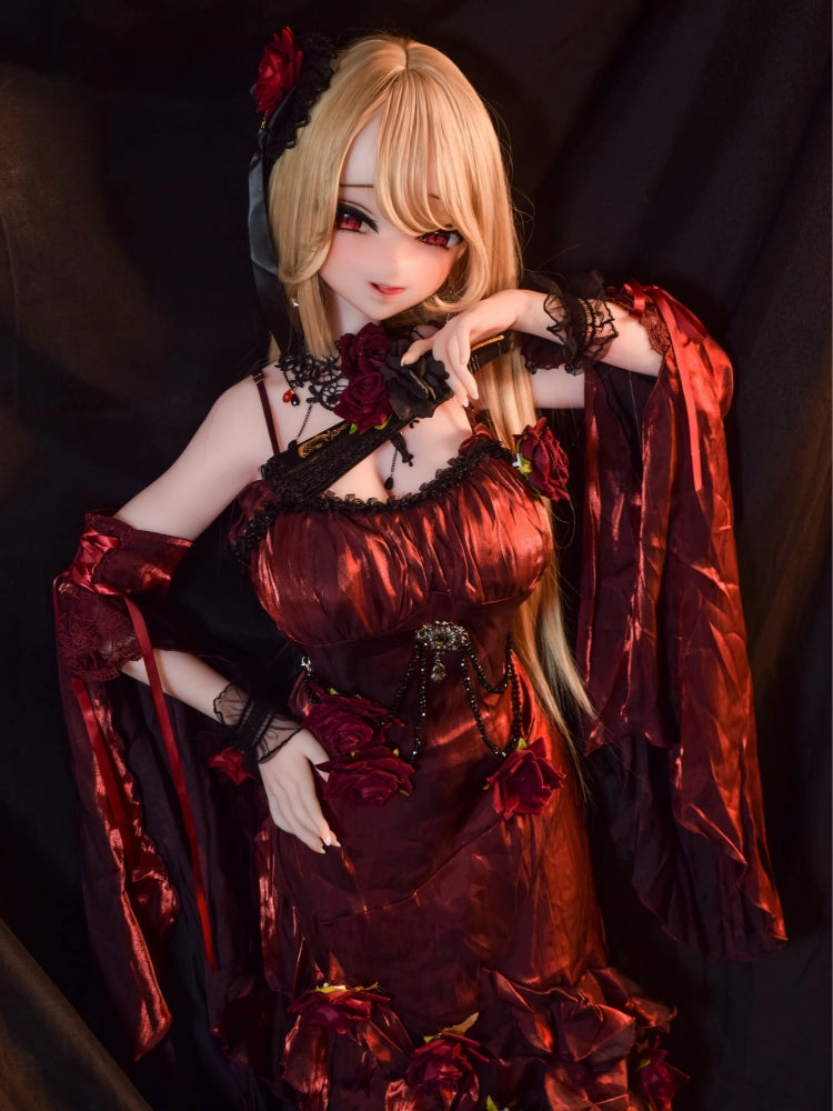 This anime sex doll is the embodiment of desire. Her pair of enchanting red eyes stare straight at you, and her slightly upturned tongue sticks out, as if teasing your imagination. She wears a close-fitting dark red rose dress, which outlines her hot body, and the rose hair accessories on her head add a bit of noble and debauched charm. She is not the gentle type, she is the type that makes you fall and make you want to conquer - charming, dangerous, and deadly sexy.