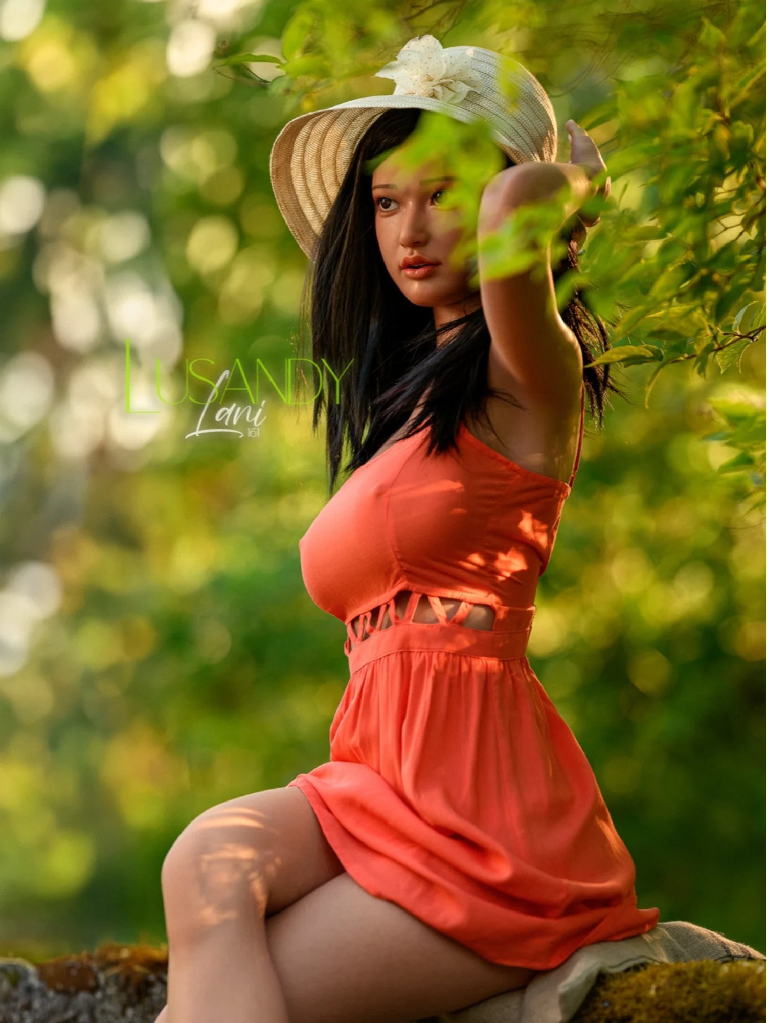 Lani's Asian features captivate me from the first glance—her medium-length black hair flows smoothly, with a natural curve at the ends, gently brushing over her shoulders. Even more striking are the details of her face, with the muscular structure perfectly embodying a real person. From the rise and fall of her brow bones to the fullness of her cheeks and the subtle upturn of her lips, every detail resembles a real Asian beauty. Her tanned skin radiates a healthy glow, and the bright orange camisole hugs her tightly, perfectly emphasizing her D-cup curves. Standing at a comfortable 161cm, she exudes a vibrant energy, a more tangible, real feel than a typical doll.