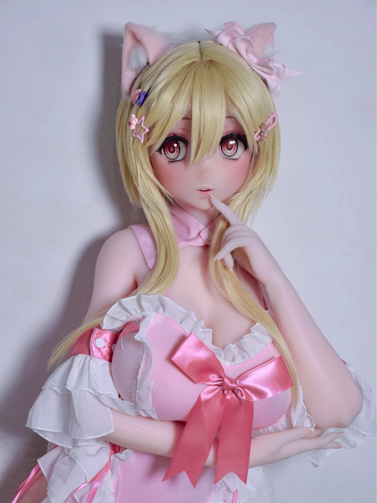 She has long blond hair, a cute pink cat-ear headband, and matching hairpins, giving her a playful and sweet look. She's wearing a pink bodysuit, reminiscent of a cute little girl straight out of anime. You can also customize her with different outfits, from a school uniform to a maid outfit, to various cosplay costumes, creating a unique fantasy experience.