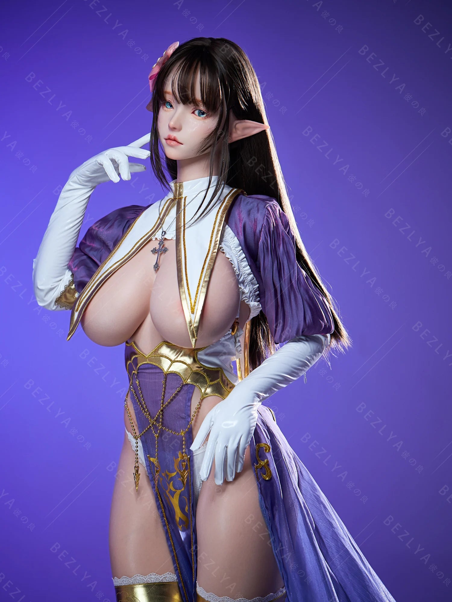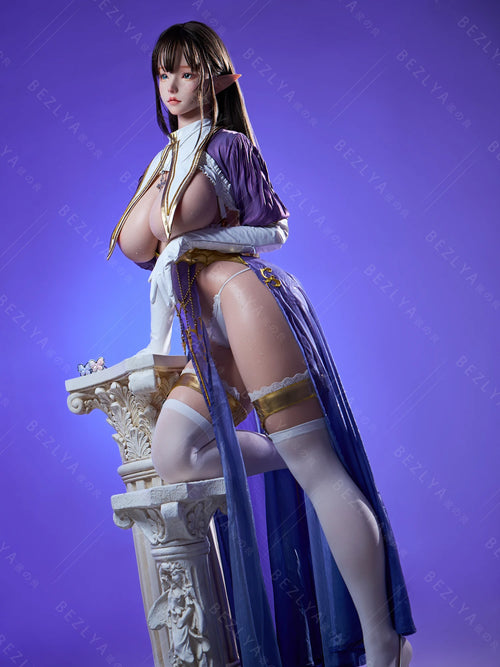 This anime elf sex doll has a pair of large, light blue eyes that are clear and lively, paired with a pure, innocent makeup look, giving her an extra sweet and charming appearance. Her ears are pointed, exuding a classic elf vibe that instantly evokes affection. She radiates a delicate, captivating aura, like a girl stepped straight out of an anime world, making you want to get close and interact with her, fully immersing you in your fantasies.