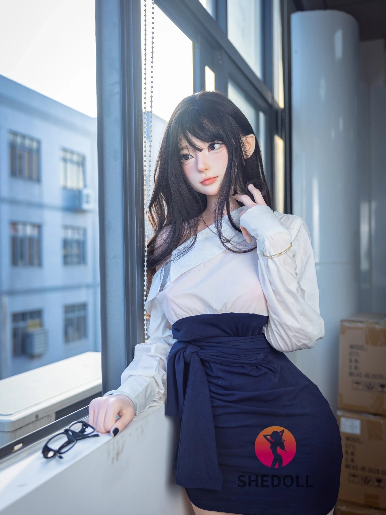 Her petite Asian face carries a touch of sweetness and playfulness. Without glasses, she resembles the charming coworker who lightens up the office; with black-framed glasses perched on her nose while she reviews documents, she transforms into a knowledgeable and engaging professional. She can be both a sweet companion and a mature listener, inviting you to get closer and explore the many facets of her personality.