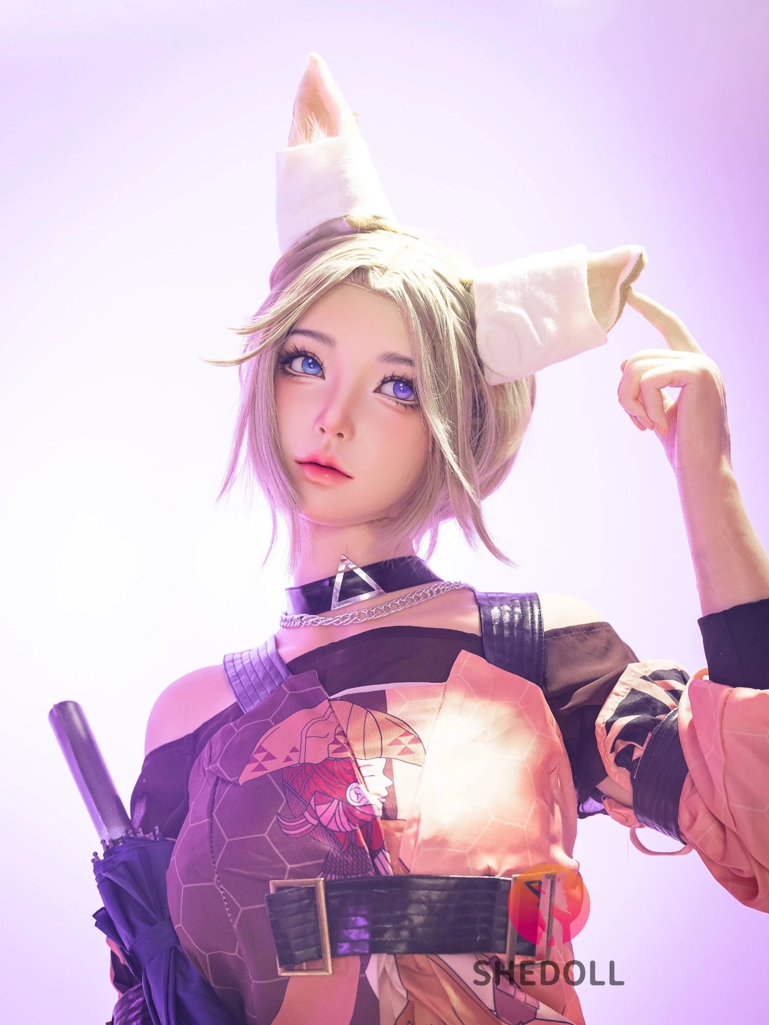She seems to have stepped right out of a fantasy game, embodying the golden-haired charm of Gongsun Li. Her delicate features radiate softness, while her dreamy eyes sparkle with mischief and allure. That sweet little mouth, slightly parted, feels as though itโs whispering your name in the quiet of the night. Under the glow of the light, her smile is both tender and intoxicating, drawing you irresistibly closer.