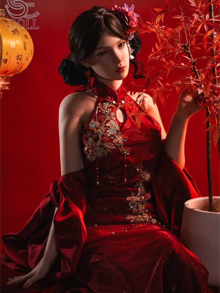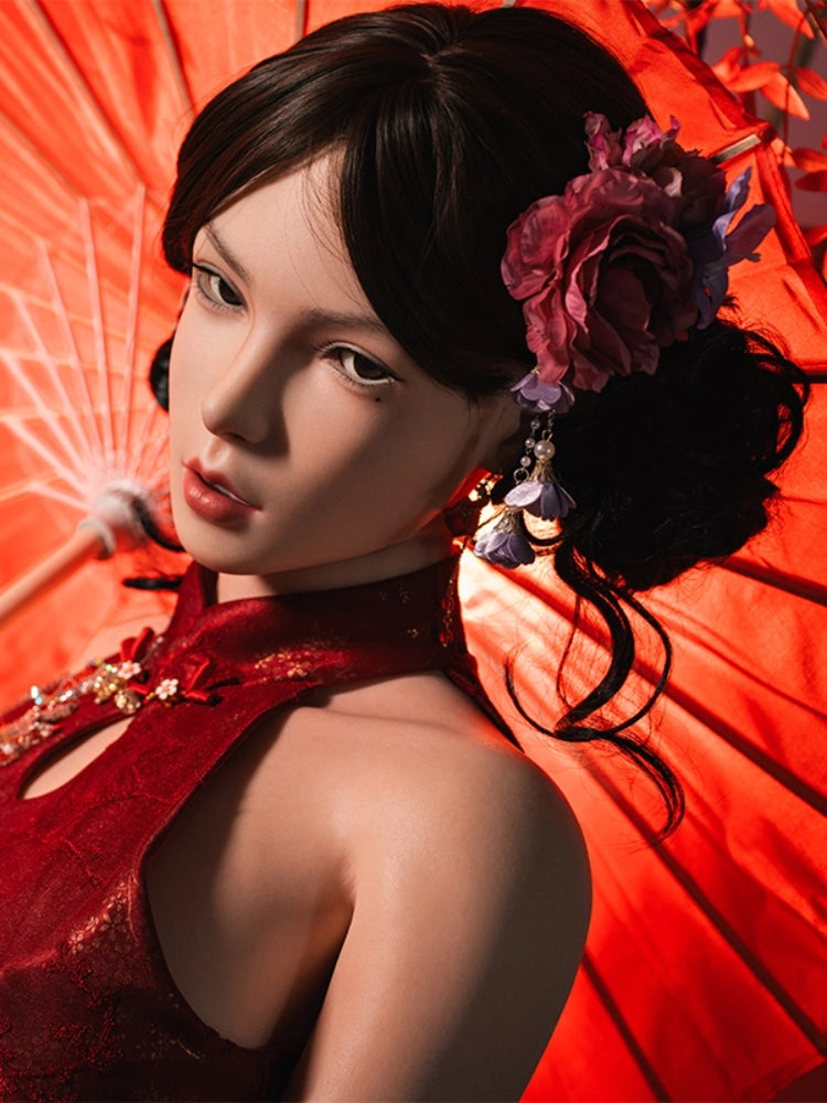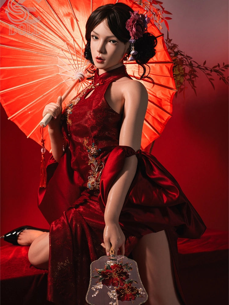 Dressed in a deep red cheongsam that highlights every soft curve, her delicate Asian makeup, dark hair bun, and floral accessory create an elegant, timeless charm. Sitting gracefully with an oil-paper umbrella, she looks like a beauty stepping out of a painting. The balanced 165cm figure, natural C-cup bust, and slim waist-to-hip lines feel incredibly lifelike. Her warm natural skin tone adds a realistic glow that draws you closer instantly. She’s more than an Asian Sex Doll — she feels like your own private oriental muse.