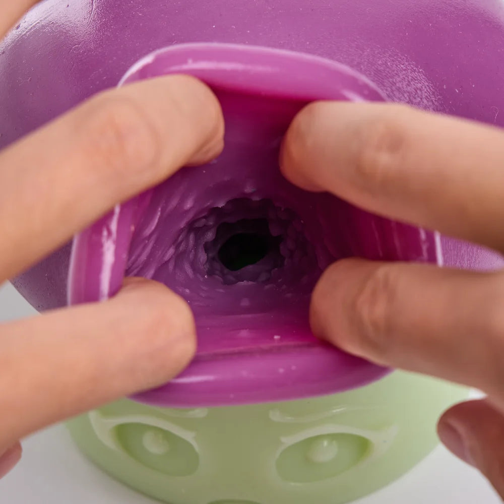 Despite its whimsical look, this fake pussy for men delivers satisfying sensations. It has two separate channels—one on the mouth and one at the base—each designed to tease, grip, and delight. Compact, fun, and perfect for private, intense play sessions anytime.