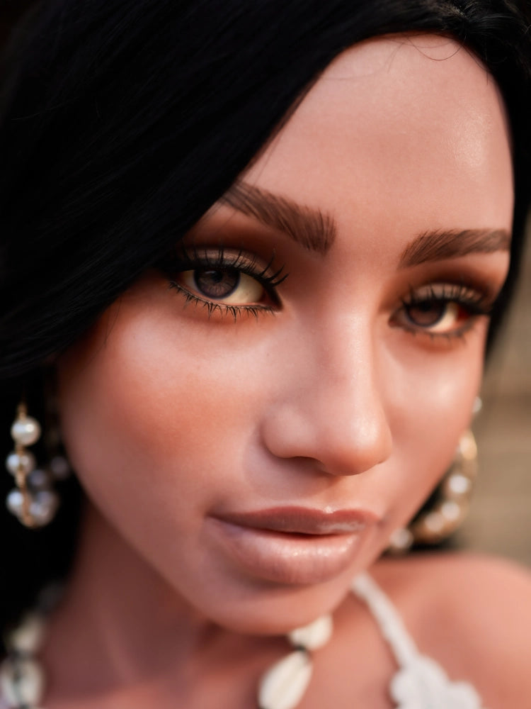 The T236 Raven includes a beautifully sculpted silicone head with delicate facial anatomy — expressive eyes, soft lips, and finely modeled contours. Her lifelike face elevates the torso into a full companion, delivering visual realism and emotional presence that make every pose more captivating.